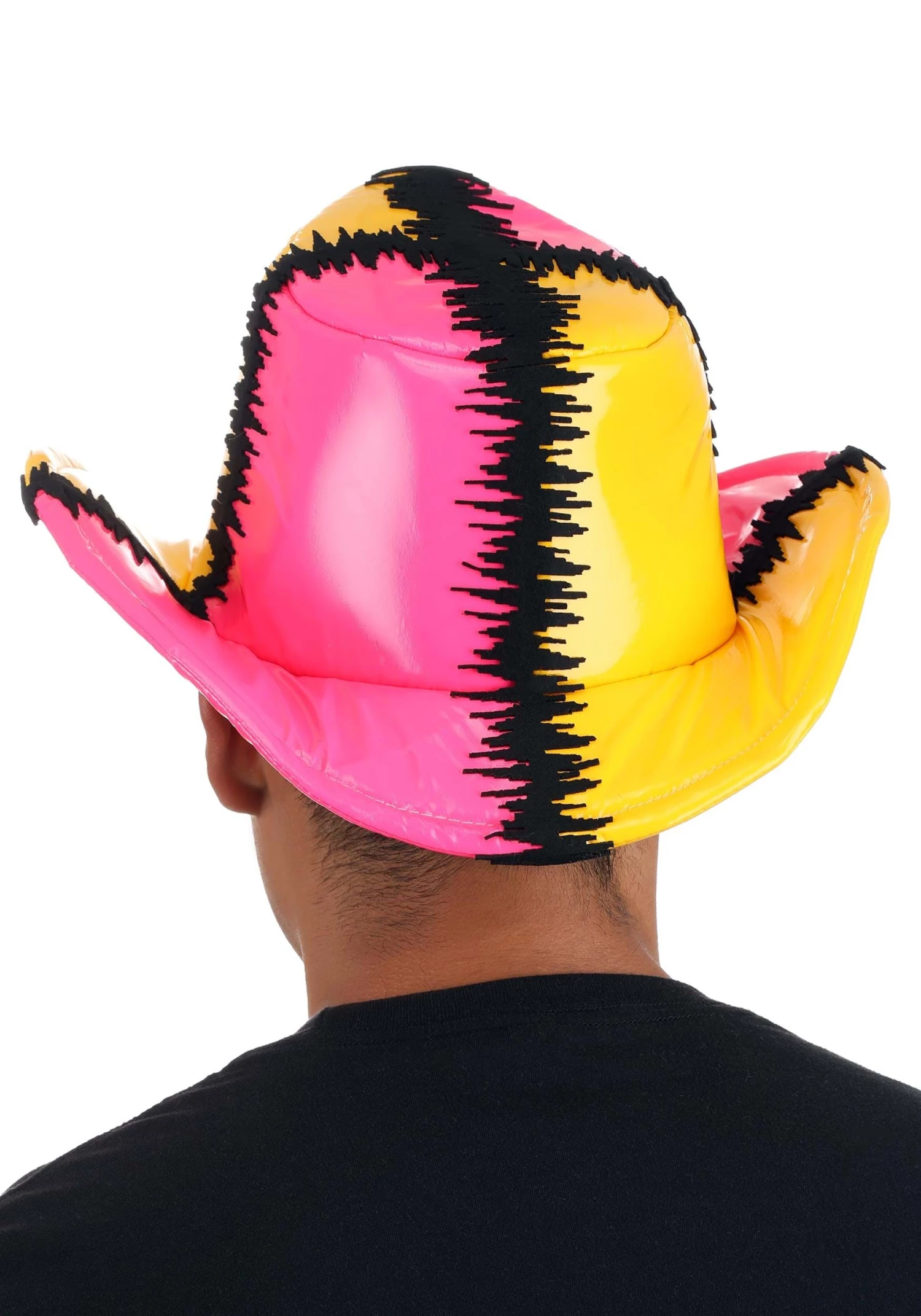 This is aΒ Pink & Yellow Randy Savage Deluxe Cowboy Hat.