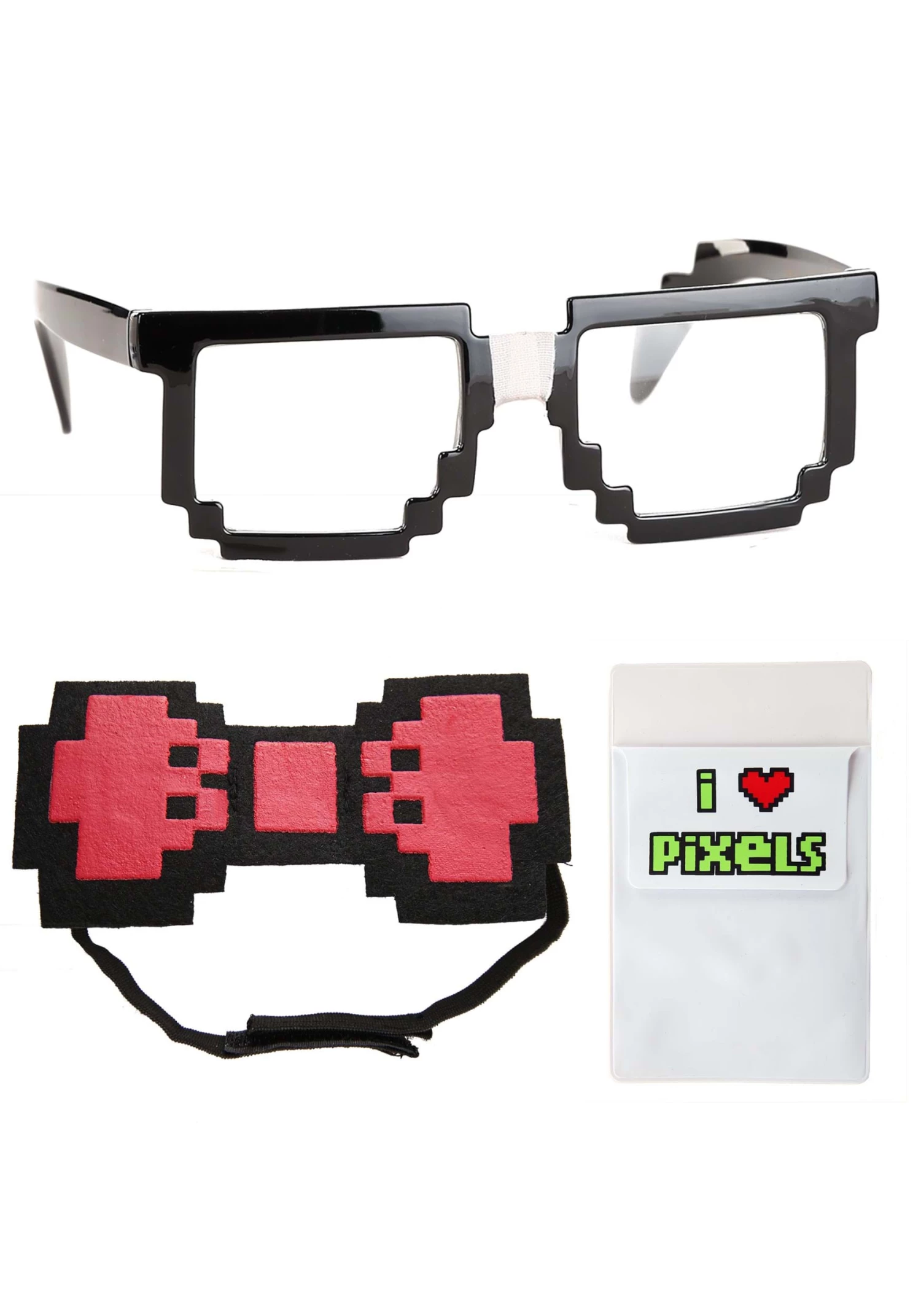 You’ll make tons do a double take when you wear this Pixel & Nerd Kit. You know what they say: true nerds see everything in pixels! Add this unique kit to your nerd costume to make it stand out!
