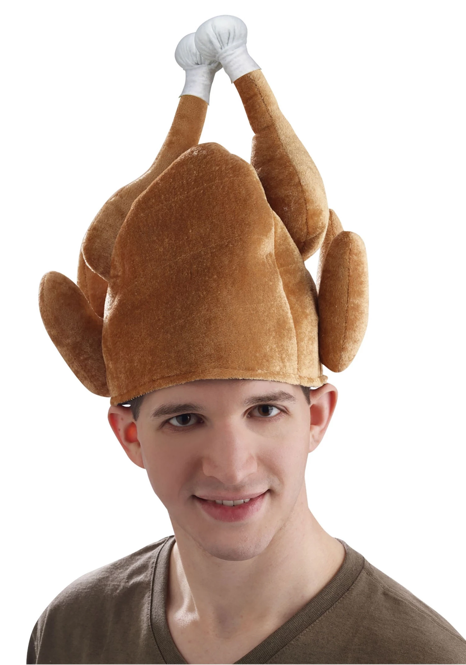 This adult roasted turkey hat shows off a golden bird in all of its glory. The soft hat fits comfortably on your noggin and it’s sculpted to look like a cooked turkey. Just place it on your head and the whole world will know where you stand on the turkey vs. ham debate!