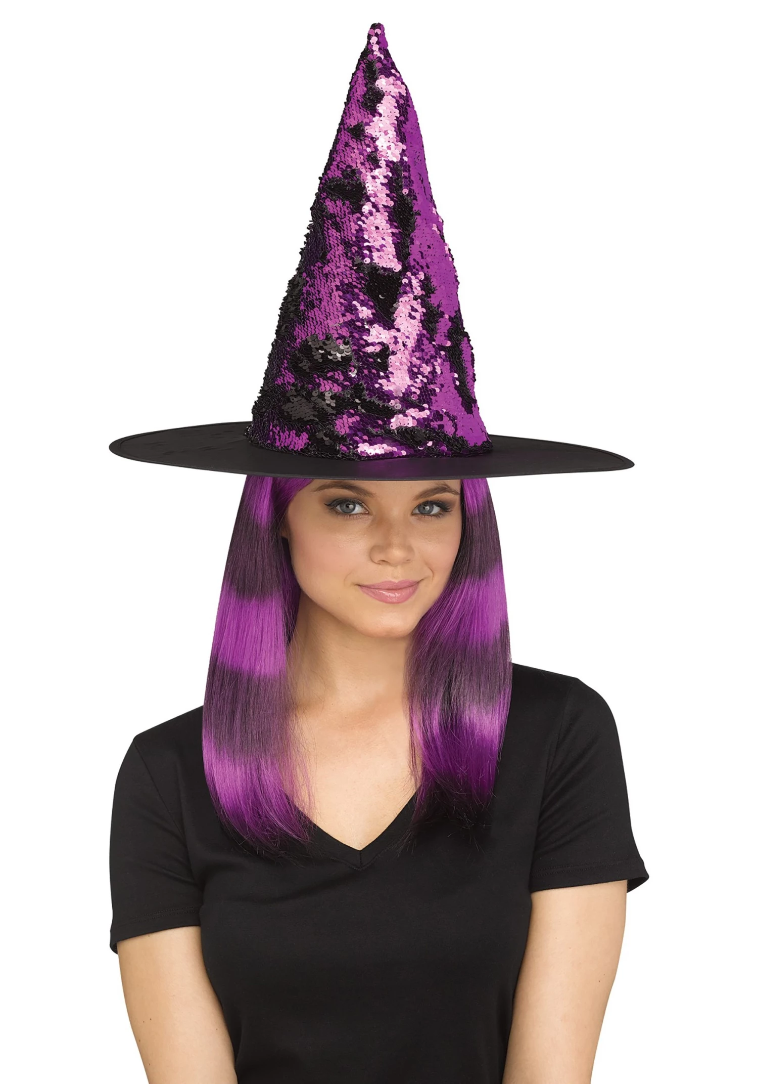 This is aΒ Flip Sequin Purple Witch Hat.