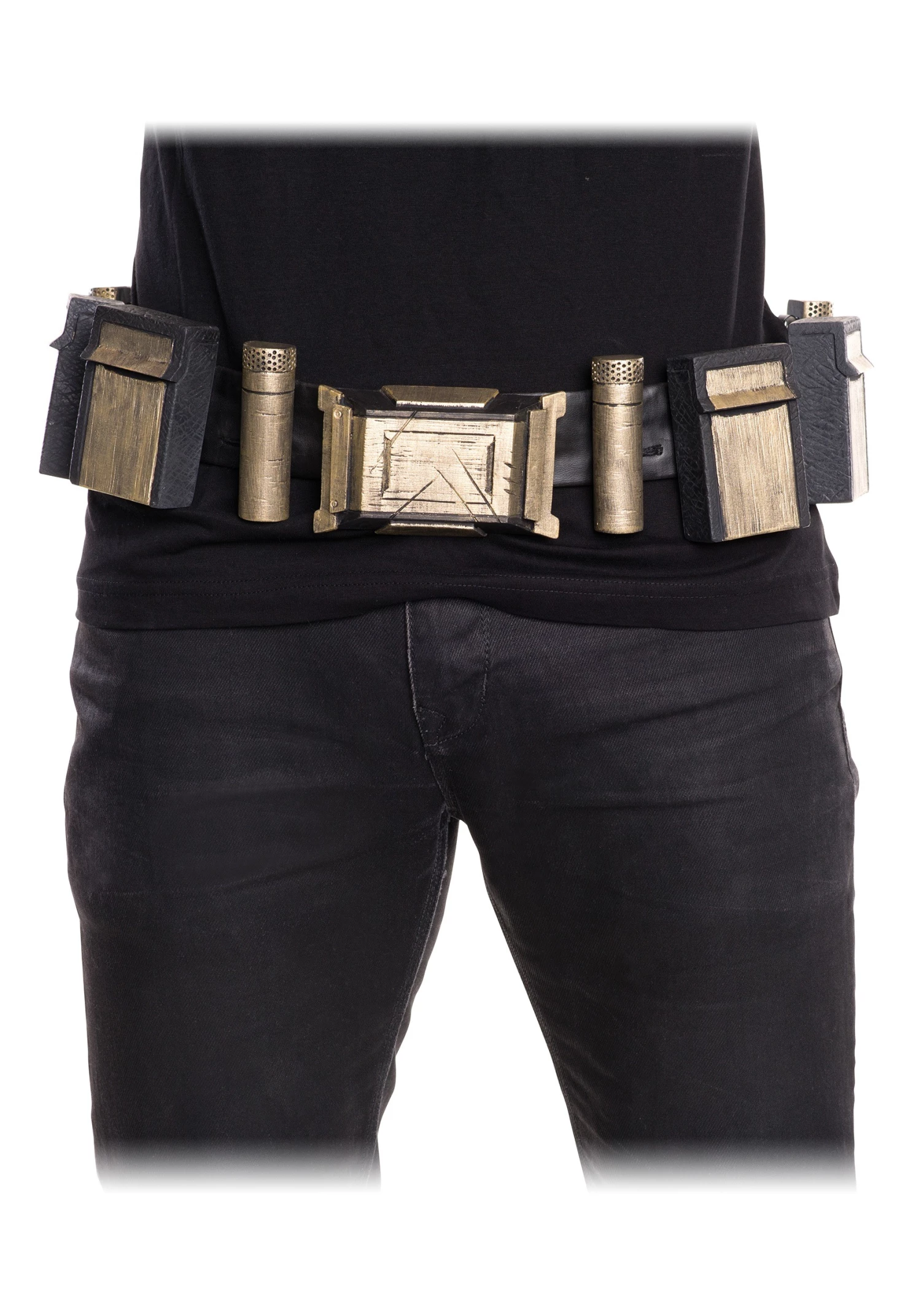 - Black belt with faux utility compartments