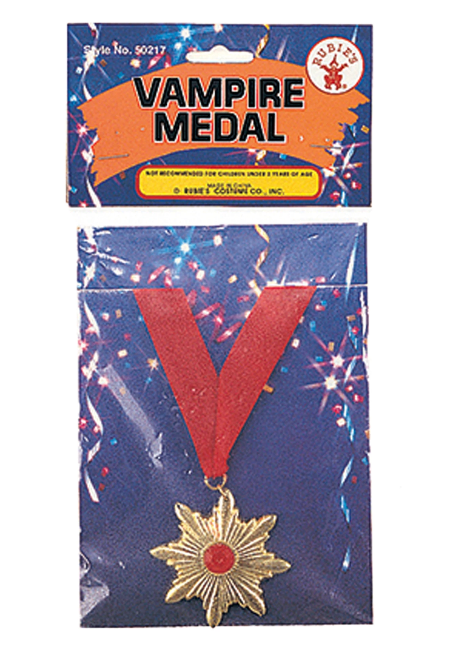 A vampire costume is always a Halloween favorite. When dressing up as a vampire, there are plenty of elements to wear that can make your costume stand out from the crowd. There are many different styles of costumes and capes you can choose from. Actually, you could even go without a cape. Those vampires from Twilight don’t wear capes and they seem to be alright. You can also dress up your vampire costume with some cool fangs, spooky contacts, or even an accessory like a medal. How does one get a vampire pendant like this? Do you have to win one at the vampire Olympics? Of course not! You can get this stylish medal from HalloweenCostumes.com and save yourself the grueling hours of training. This faux gold pendant features a red rhinestone in the middle and hangs from a red ribbon necklace. If you’re looking for a unique accessory to add to your vampire costume this Halloween, do yourself a favor and get this vampire pendant!