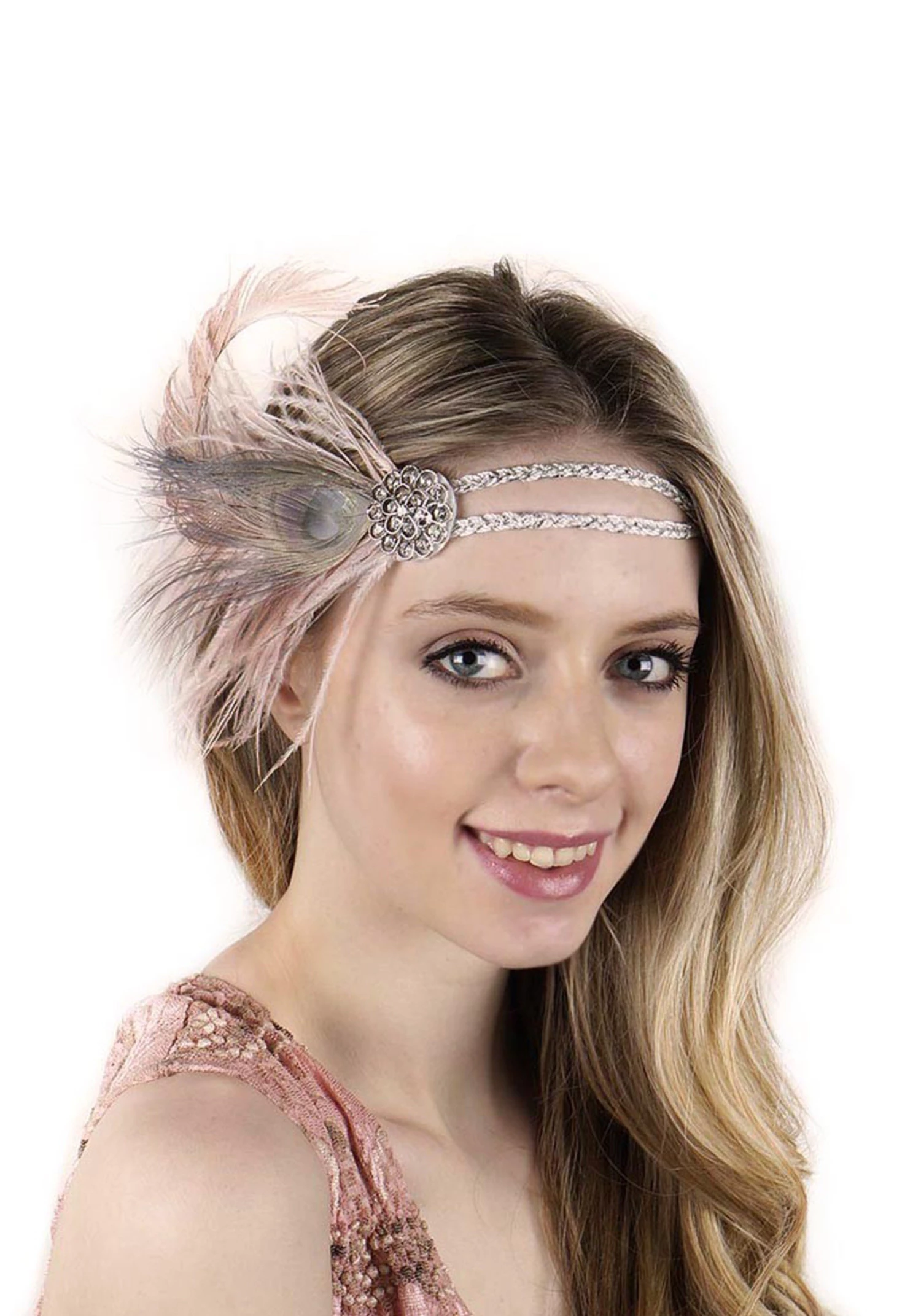 We’ve got plenty of swanky flapper costumes to fit any style you could dream of, but this Beige Flapper Headband with Rhinestones is what’s really going to make your getup look like the bee’s knees! This fashionable headband sparkles like The Big Apple on a Saturday night, with its silvery elastic cord and rhinestone decorated medallion that holds the elegant feather accents. You’ll feel like a true flapper when you’re sporting this cap. Just don’t get caught at a speakeasy when the coppers show up!